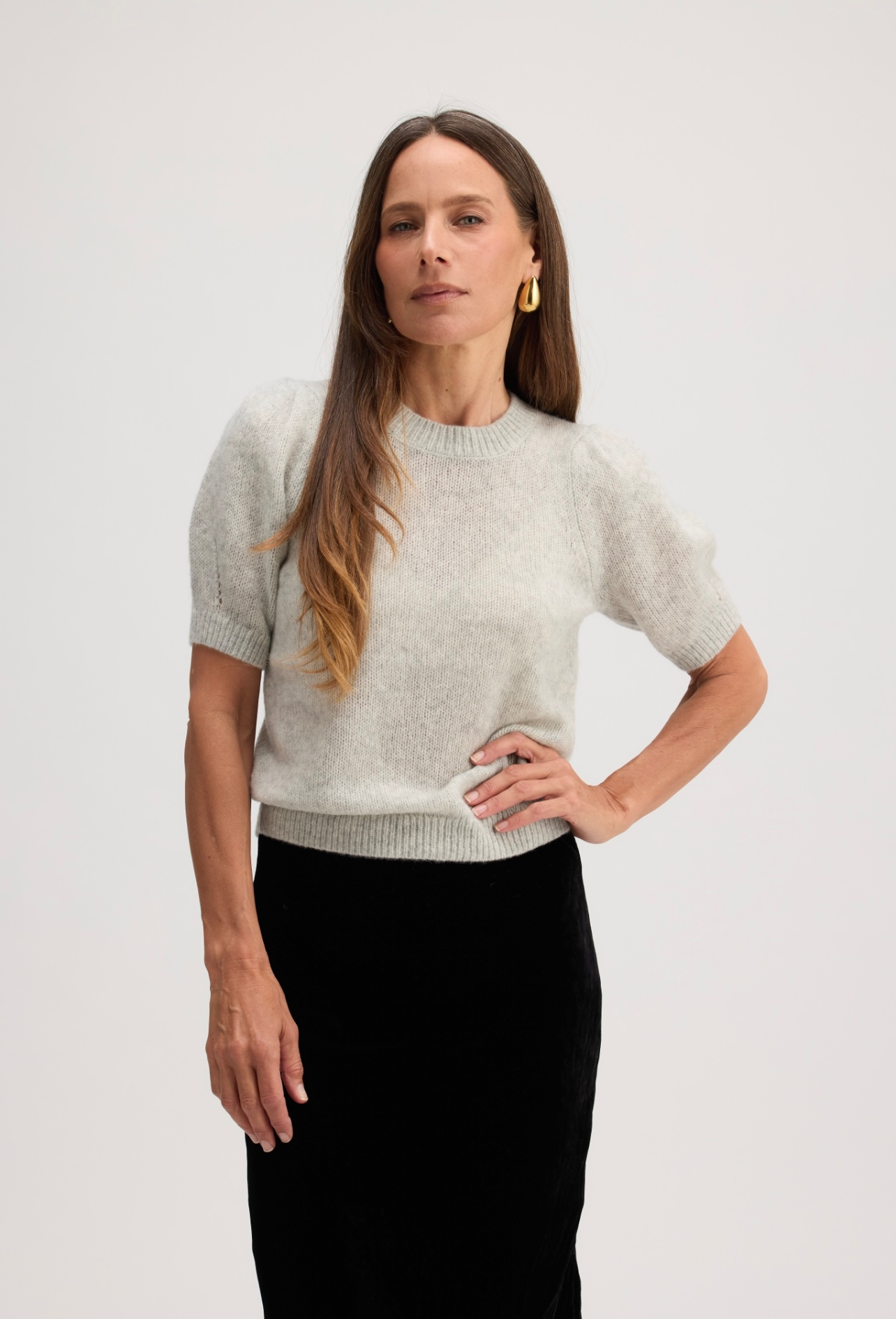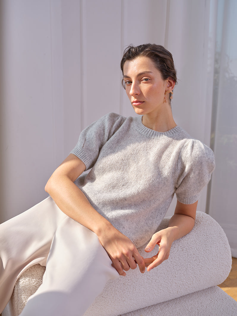 Dressed up style with a casual feel. The ARIA S/S Sweater is carefully crafted using a unique blend of supple cashmere and smooth silk for an unmatched feel against the skin. This piece features a flattering puff sleeves and subtle ribbed detailing for a contemporary elegance that you can wear anywhere.