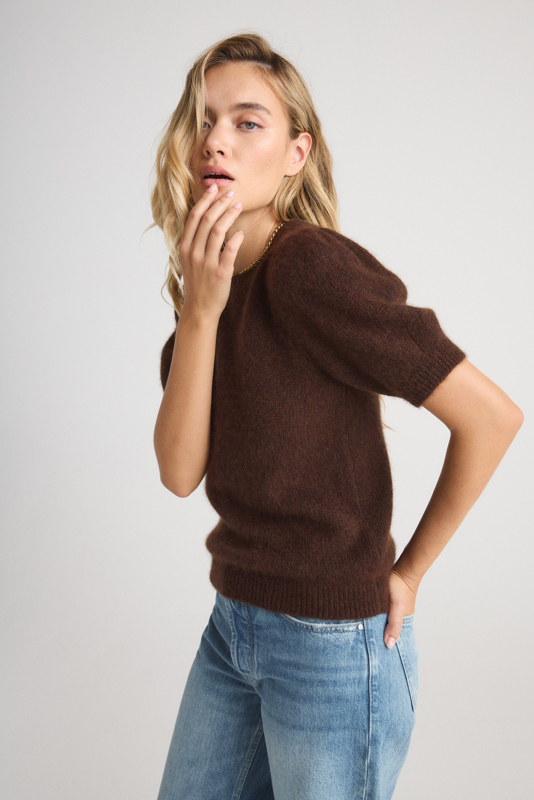 Dressed up style with a casual feel. The ARIA S/S Sweater is carefully crafted using a unique blend of supple cashmere and smooth silk for an unmatched feel against the skin. This piece features a flattering puff sleeves and subtle ribbed detailing for a contemporary elegance that you can wear anywhere.