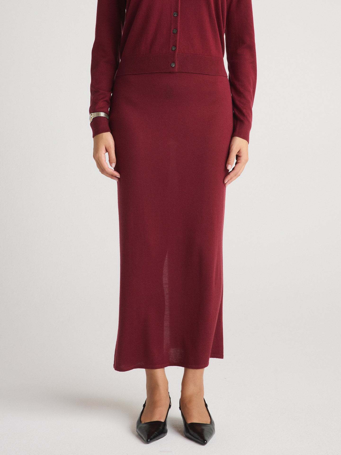 A silk cashmere slip skirt with a weightless drape and soft sheen in taupe and navy, designed to move effortlessly with you.