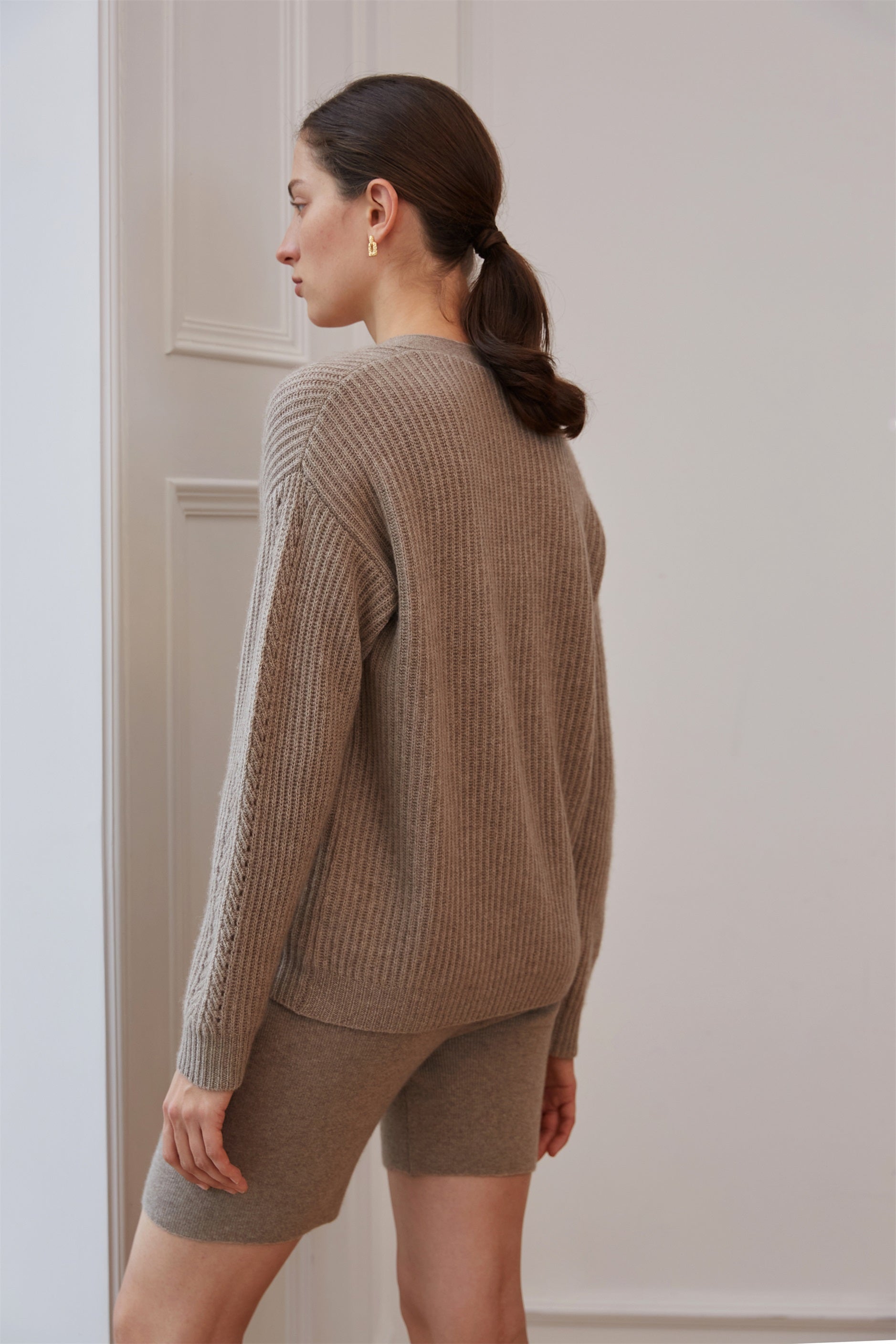 Cashmere is delicate, so we recommend washing it no more often than every fourth wear. In between, simply allow the garment to air out. When it does need a clean, hand wash gently in lukewarm water with a small amount of mild shampoo, then lay flat on a towel to dry. Avoid hanging or exposing it to heat, as this may alter its shape of the garment.