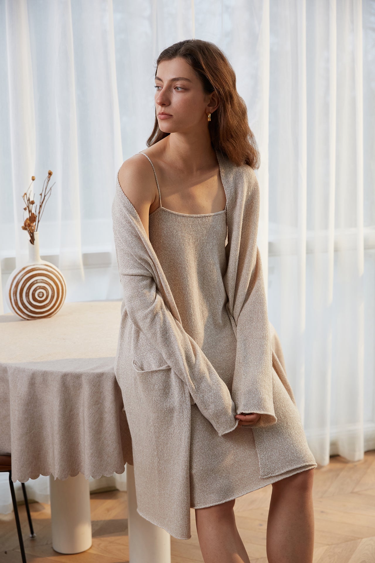 Cozy meets luxury. This lightweight and breathable mid-length brown cardigan features a modern relaxed fit with an open-front design and bold oversized pockets. Slip on Evan with anything in your wardrobe, for a timeless luxury appearance.