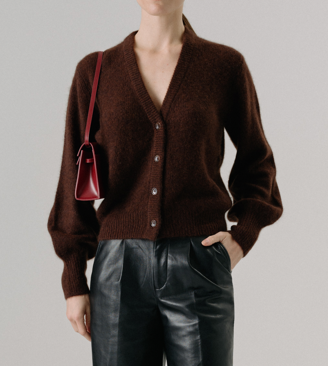 Introducing our stunning ISA Balloon Sleeve Cardigan, an embodiment of elegance and comfort. Crafted from a luxurious blend of silk and cashmere, this cardigan offers unparalleled softness and style. The v-neckline and long balloon sleeves with cuffs exude timeless sophistication, while the button-through front and straight hemline add a polished touch. Perfect for any occasion, this exquisite cardigan is a must-have addition to every wardrobe, promising to elevate your style with its chic and refined design.
