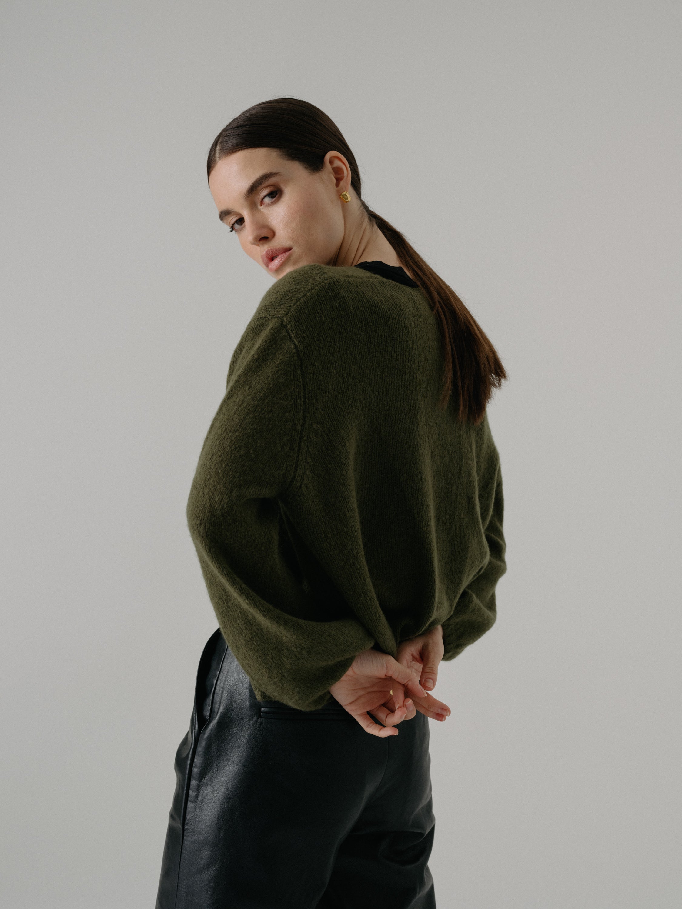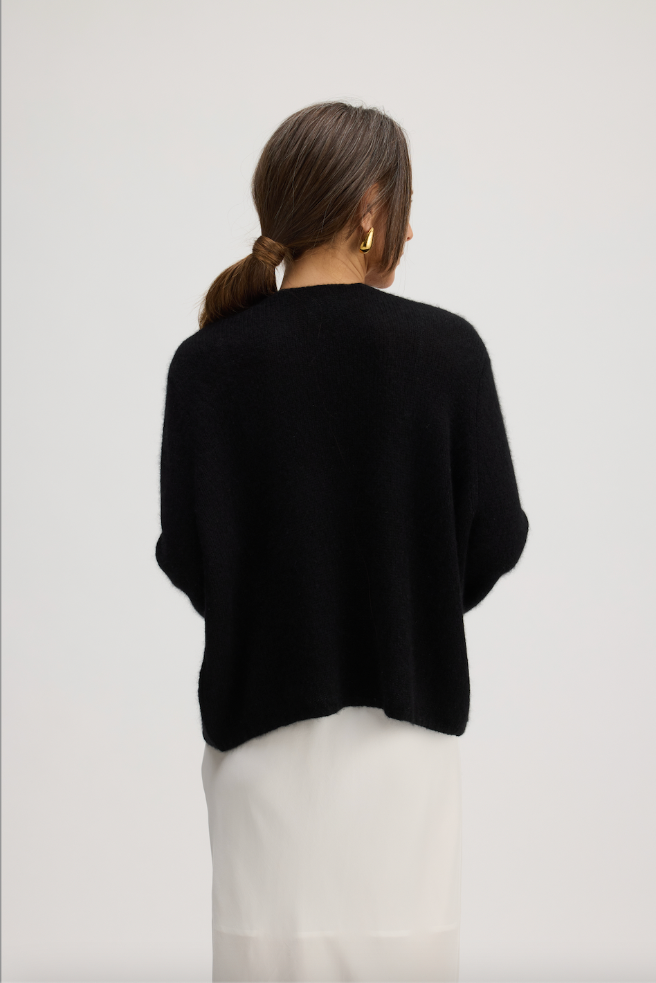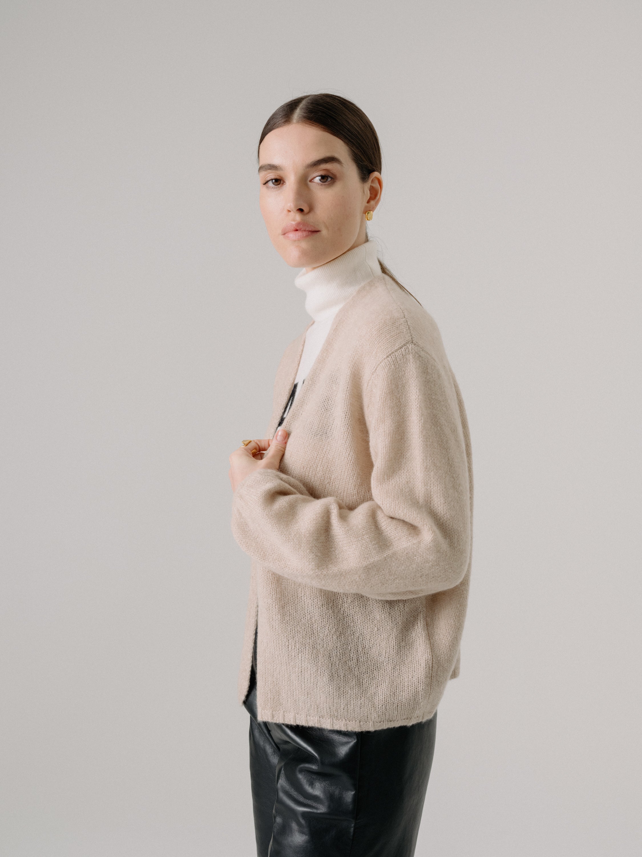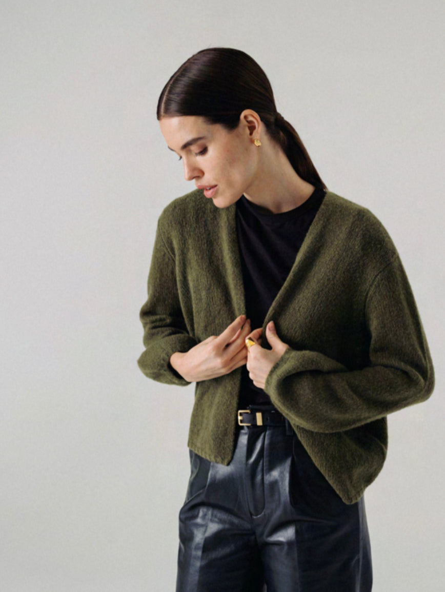 An open-front cardigan in silk-cashmere with voluminous balloon sleeves. Relaxed in fit with a breathable, cloud-soft texture—ideal for layering through shifting seasons.