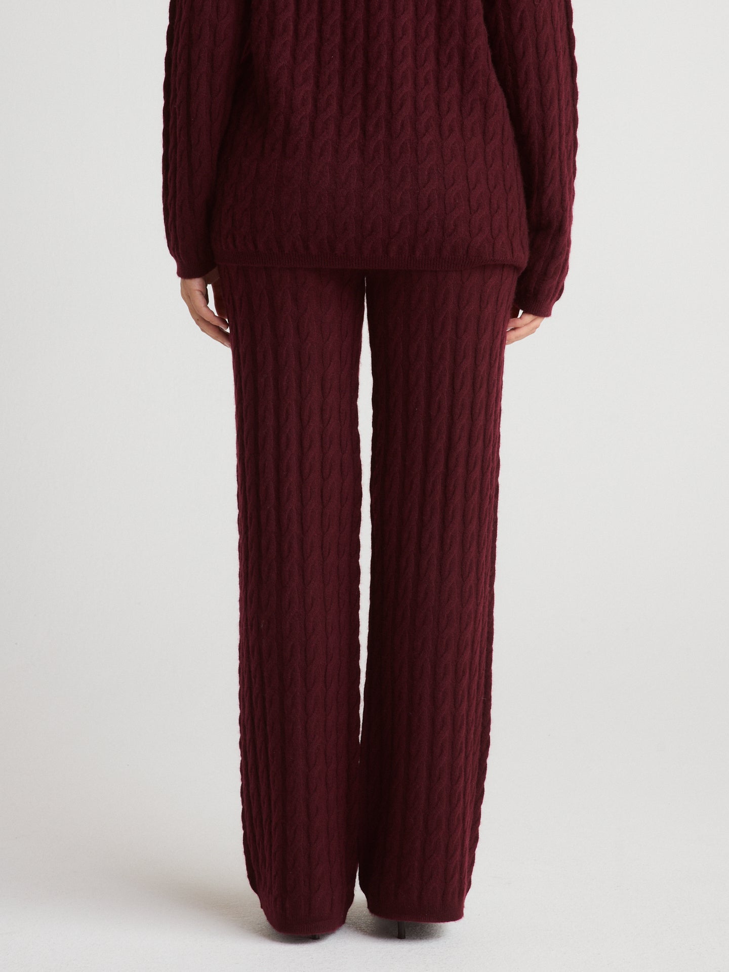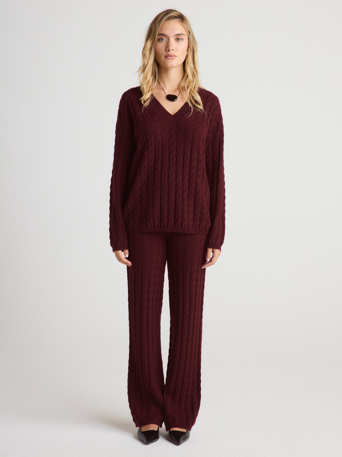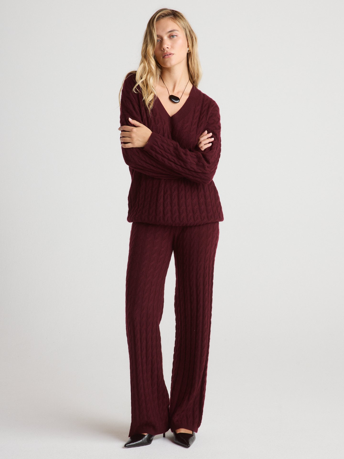 A wide-leg sweatpants in 100% cashmere with an intricate cable-knit texture. Designed with a relaxed, flowing silhouette—perfectly paired with the Stetson V-Neck for an effortlessly elevated set.