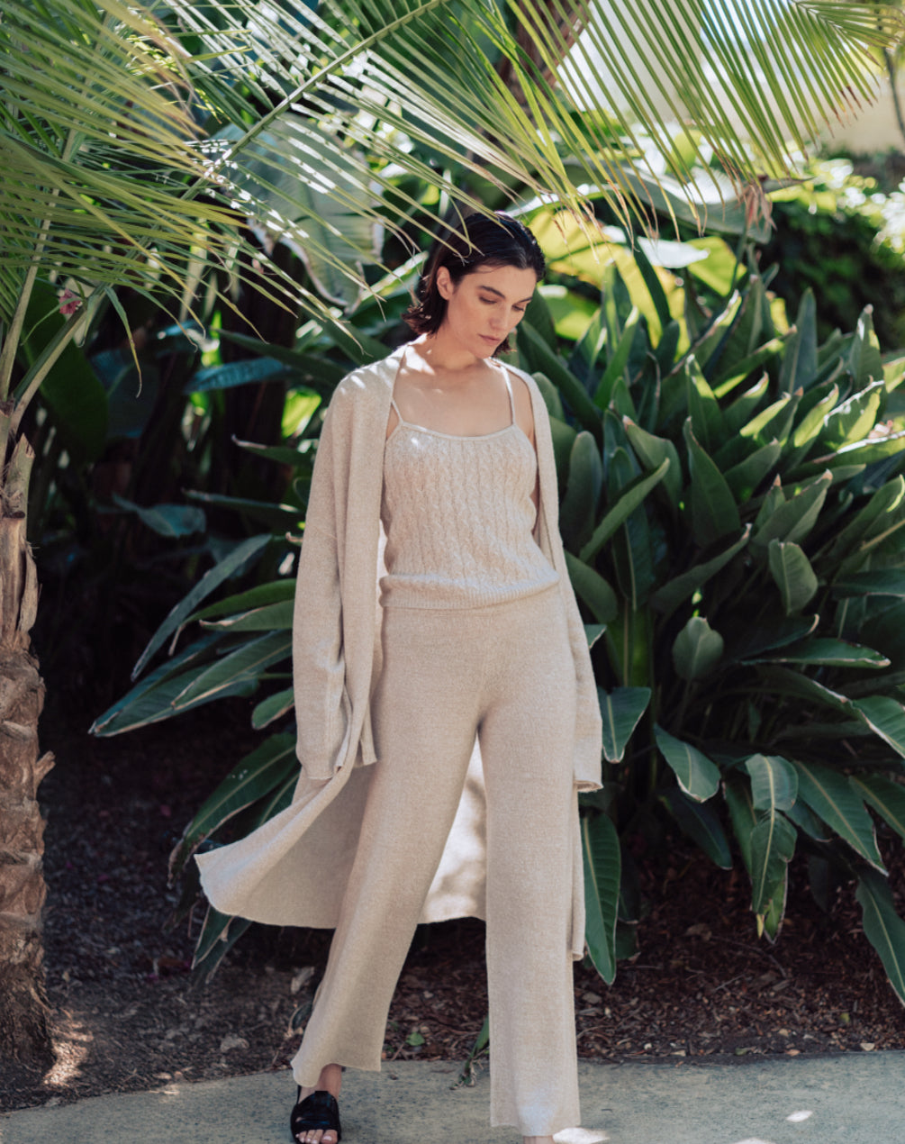 Elevate your everyday essentials. These ultra cozy and versatile linen-cashmere-blends sweatpants feature a contemporary relaxed fit with flowing silhouette. Pair Luka with the Avril Cami and Evan Midi Duster for the perfect ‘I woke up like this’ aesthetic. Pair with Evan Duster for an elevated take on luxury loungewear