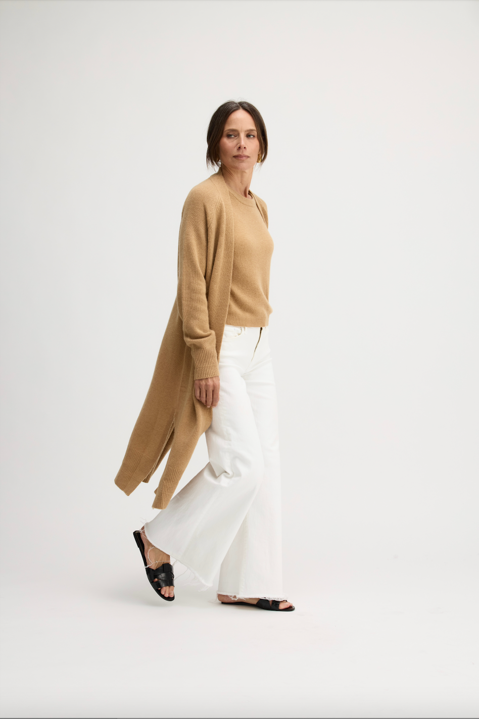 Subtly stunning and overtly timeless, Maya cashmere cardigan features a modern open-front design with slits on both sides. The bold ribbed trim adds a contemporary feel to this timeless piece for the perfect finishing touch. Style with sweatpants for a lounging appearance or team with jeans for a cozy yet versatile look.