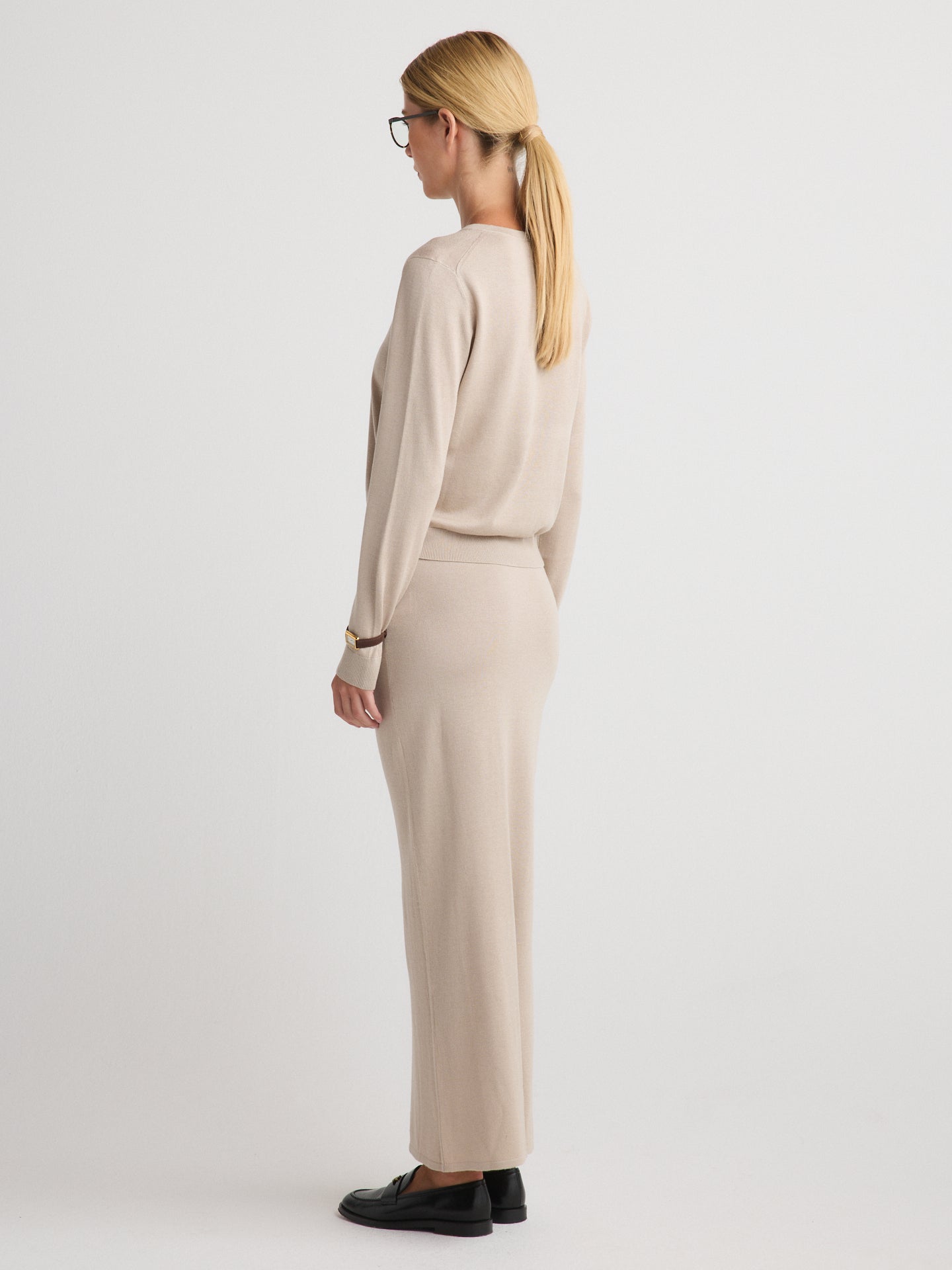 The Mira Cardigan in silk-cashmere is a modern classic — soft, lightweight, and subtly lustrous. Designed with refined button closures, it offers versatility in wear, whether layered or styled on its own. A timeless piece that balances ease with quiet sophistication.
