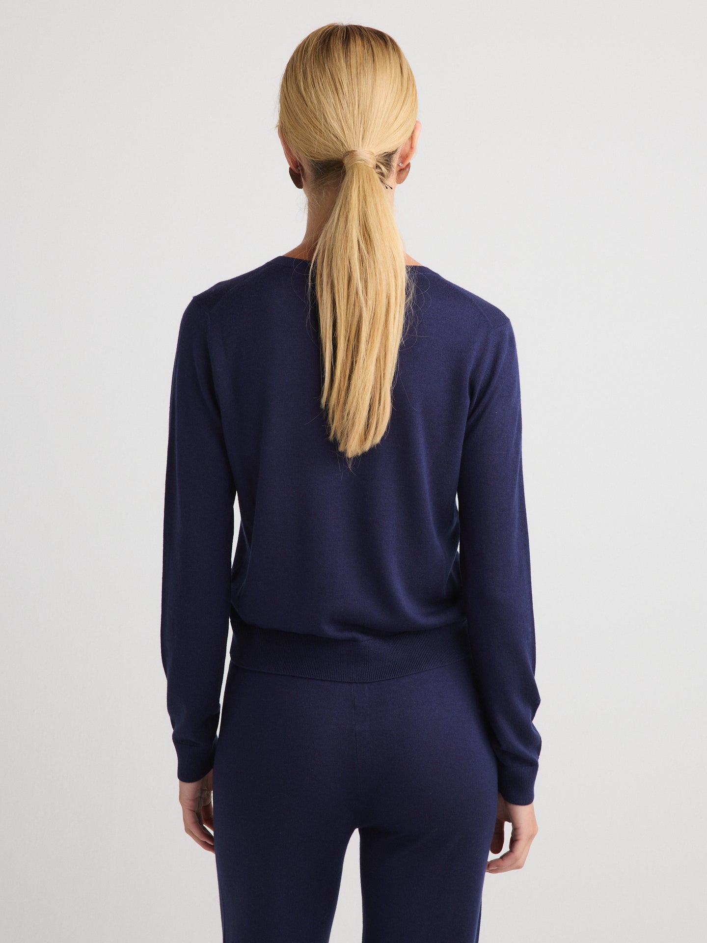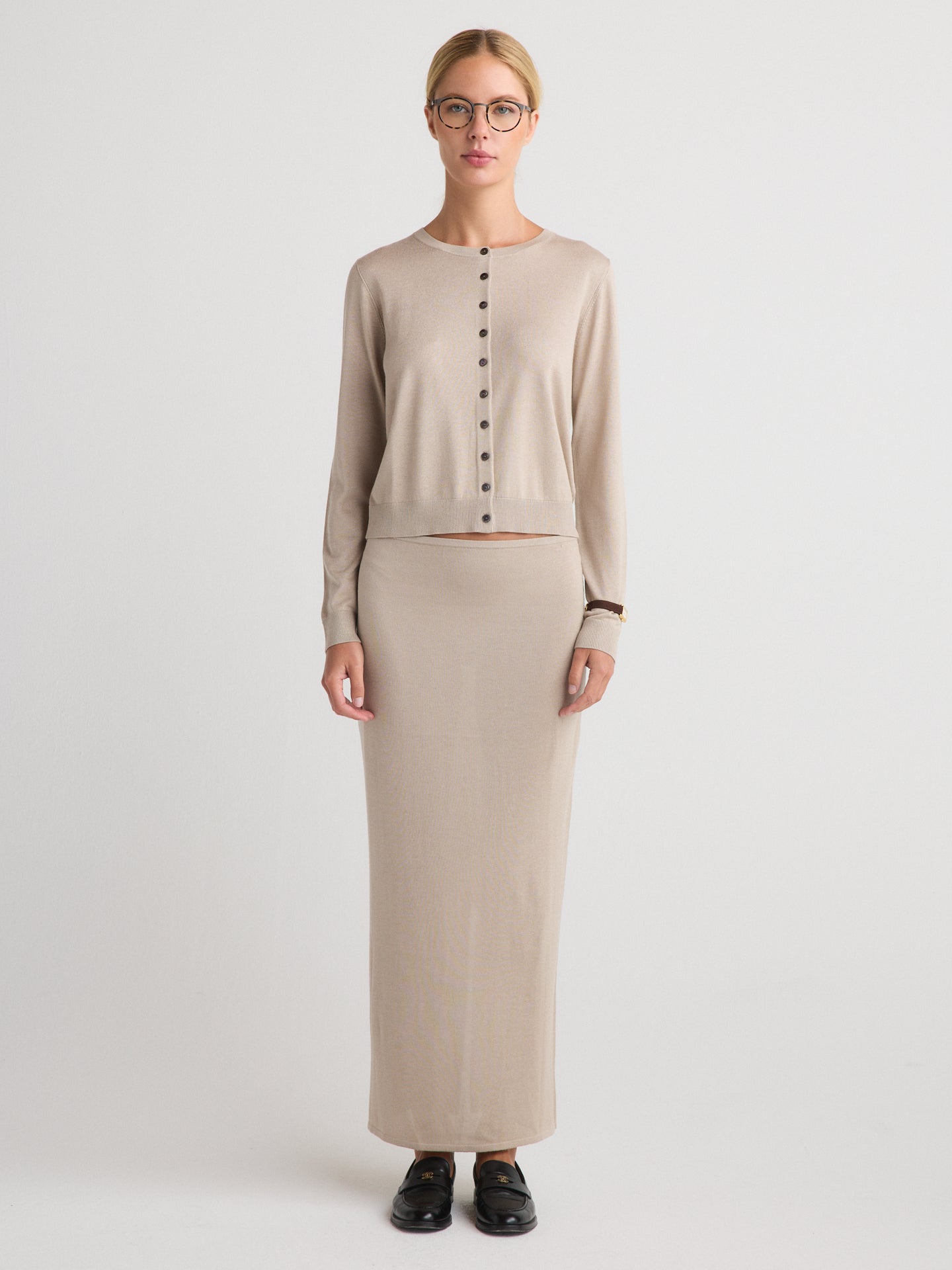A modern cardigan in fine silk-cashmere with an airy, feather-light feel. Designed for effortless layering.