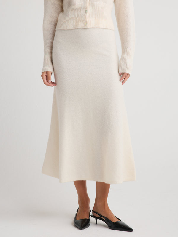 A button-front cardigan in silk-cashmere with a light, supple feel. Equally suited for slipping over dresses or pairing with wide-leg trousers.