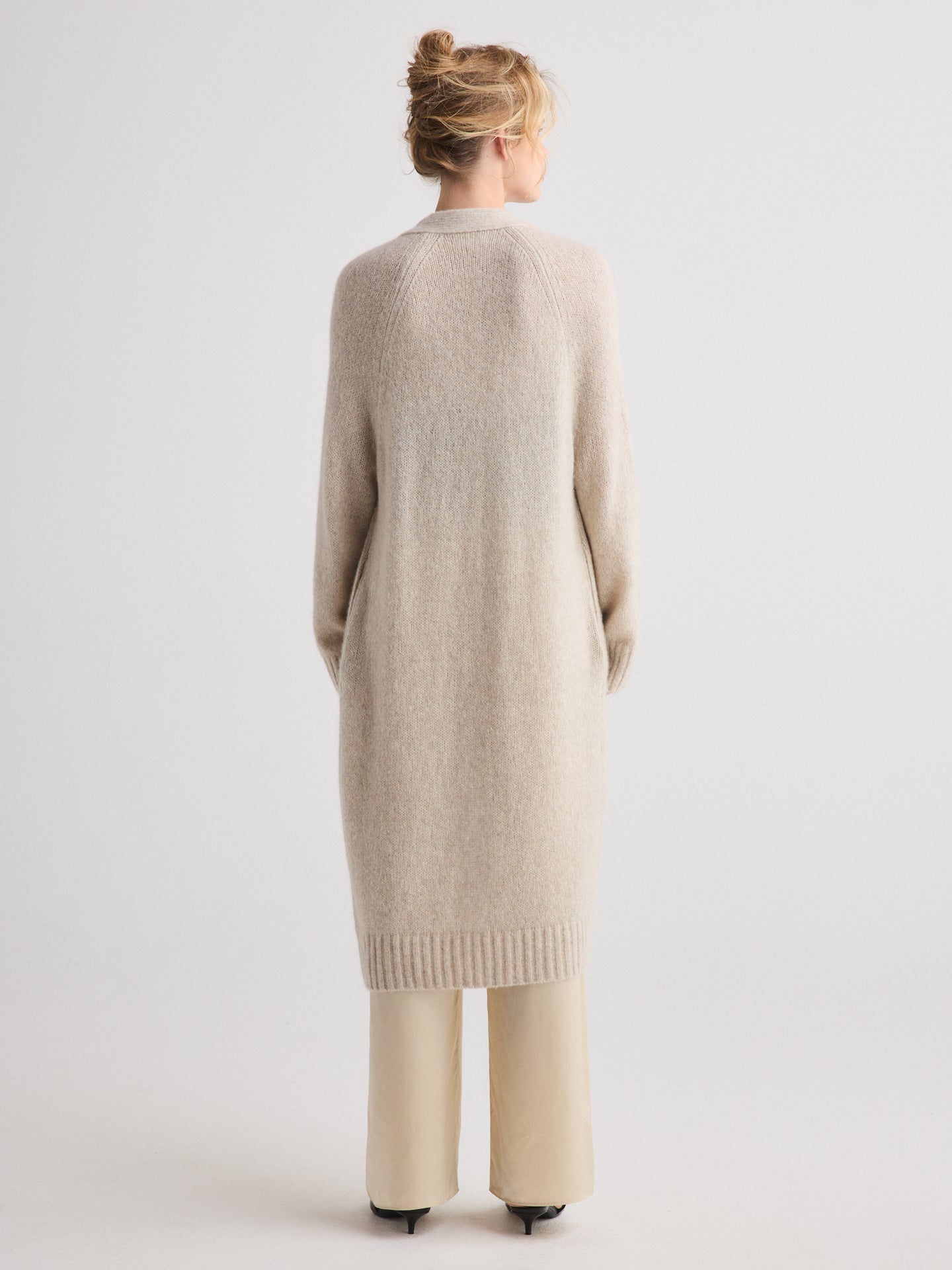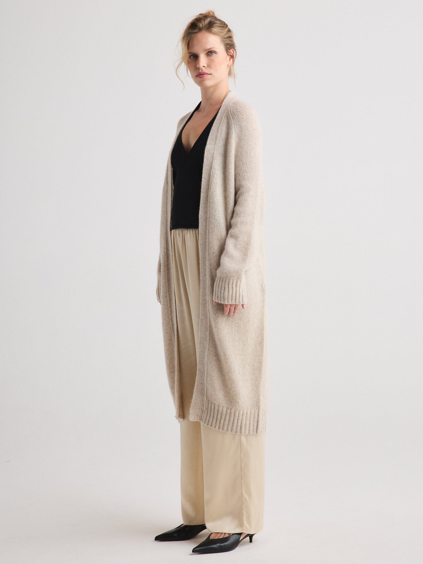 Fine cashmere benefits from gentle care. Air the garment between wears, and when needed, hand wash in lukewarm water with a mild shampoo. Lay flat to dry and avoid hanging or direct heat to maintain its shape.